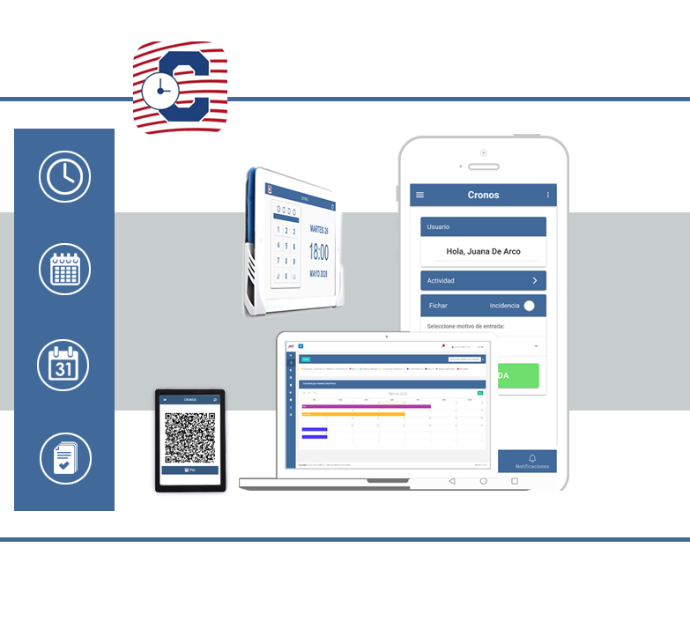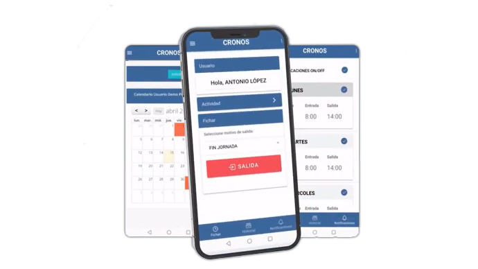 Cronos, la aplicación de Control Horario que simplifica la gestión de su empresa. Cumpla con la Ley de una forma ágil y sencilla,  simplifique las tareas de Recursos Humanos.