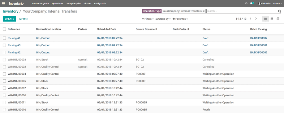 Obtén el método de almacenamiento más eficiente y mejora todas tus operaciones internas. El inventario de doble entrada de Odoo no tiene entradas, salidas o transformaciones de existencias. En su lugar, todas las operaciones se consideran movimientos de existencias entre ubicaciones.