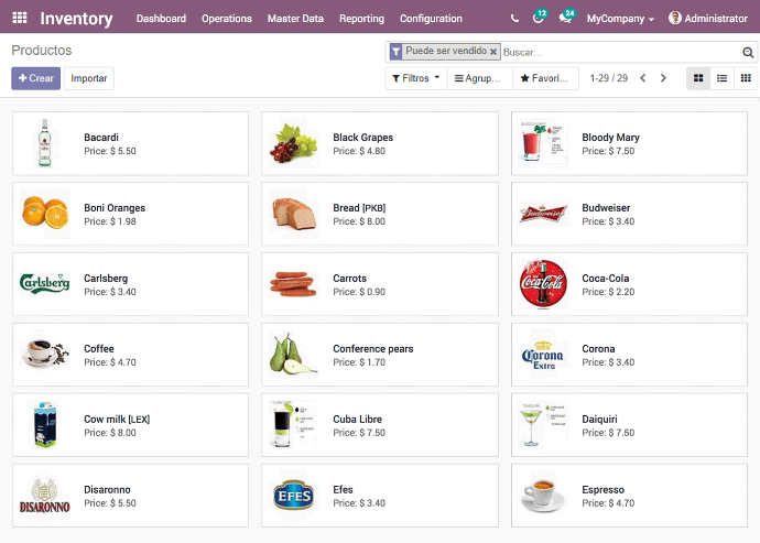 Inventario de Odoo ingresa de forma automática cualquier transacción del TPV en las existencias. Puedes ver en tiempo real la disponibilidad de productos sin perder tiempo. Además, el TPV es compatible con Comercio electrónico de Odoo. No necesitarás configurar existencias separadas para las dos aplicaciones, serás con facilidad un negocio verdaderamente multicanal.